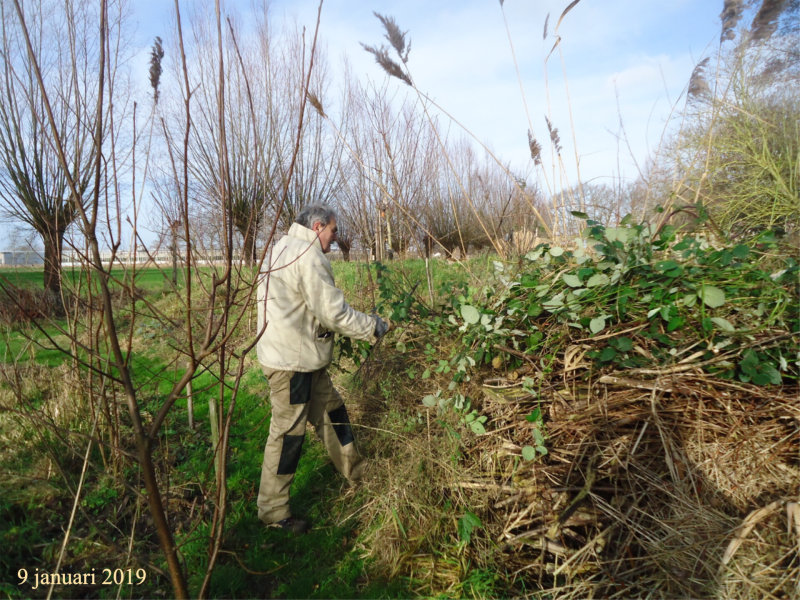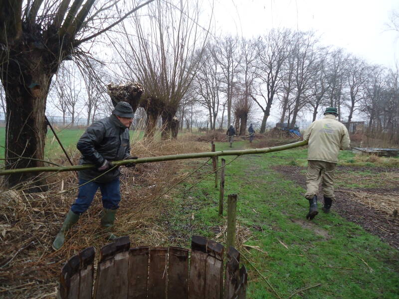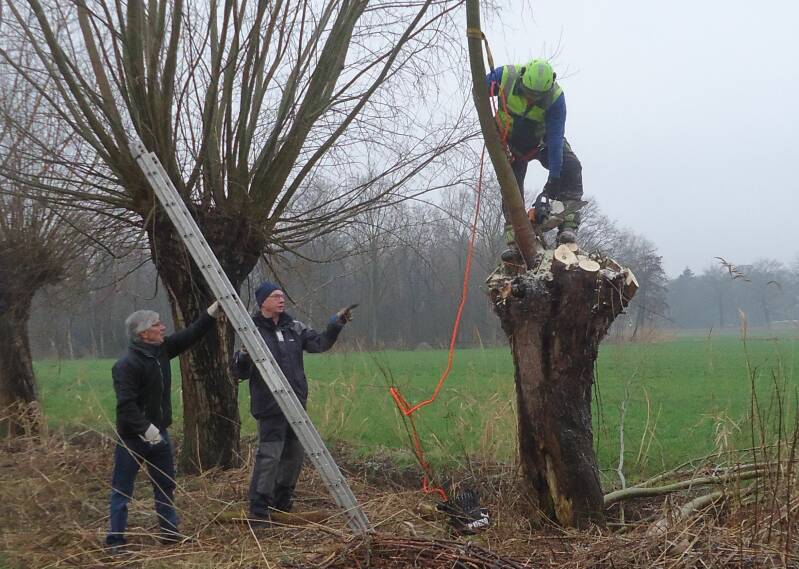 Om de dieren voortdurend woonplaats en vluchtgelegenheid te geven, knotten we de wilgen één op drie. Dat wil zeggen dat we telkens een wilg knotten en twee wilgen niet knotten. Na drie jaar zijn alle wilgen eenmaal geknot en begint de cyclus opnieuw.