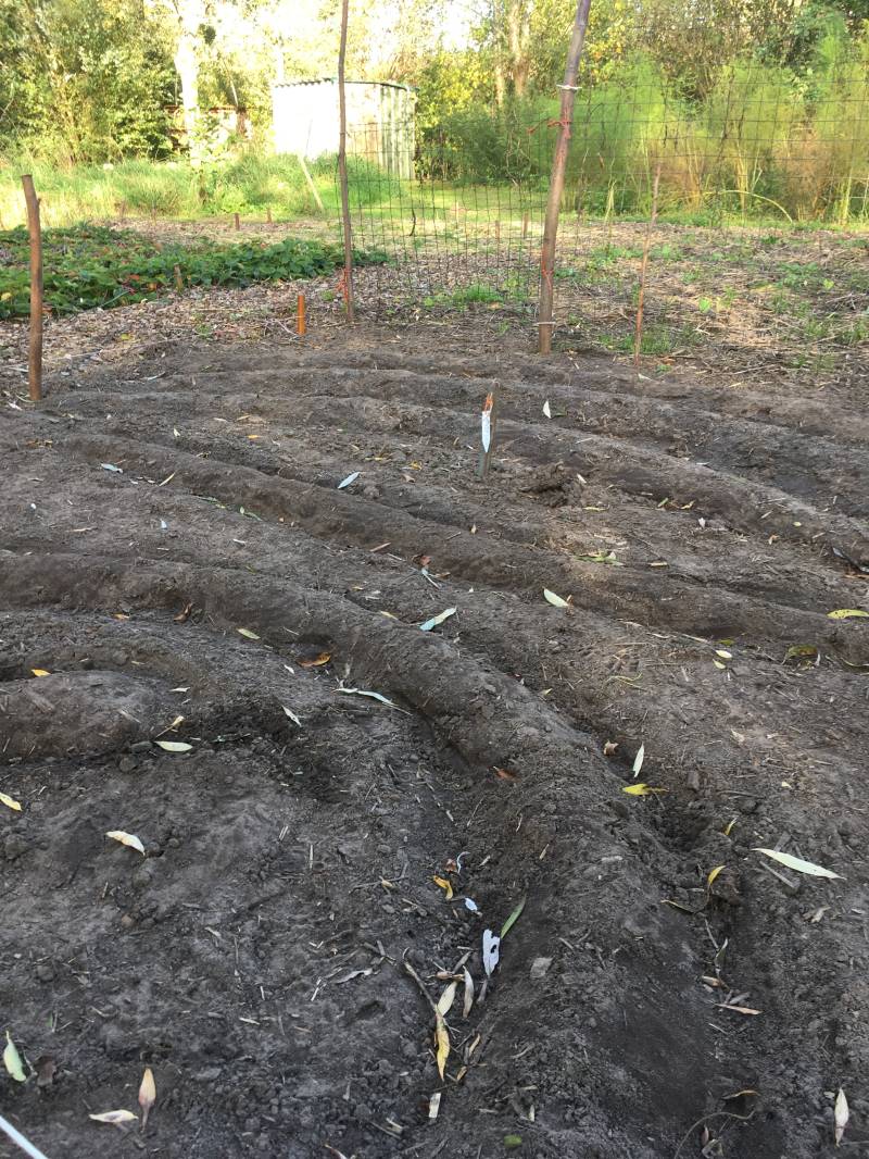 knoflook is deze keer in gebogen lijnen geplant, ideetje van Herman